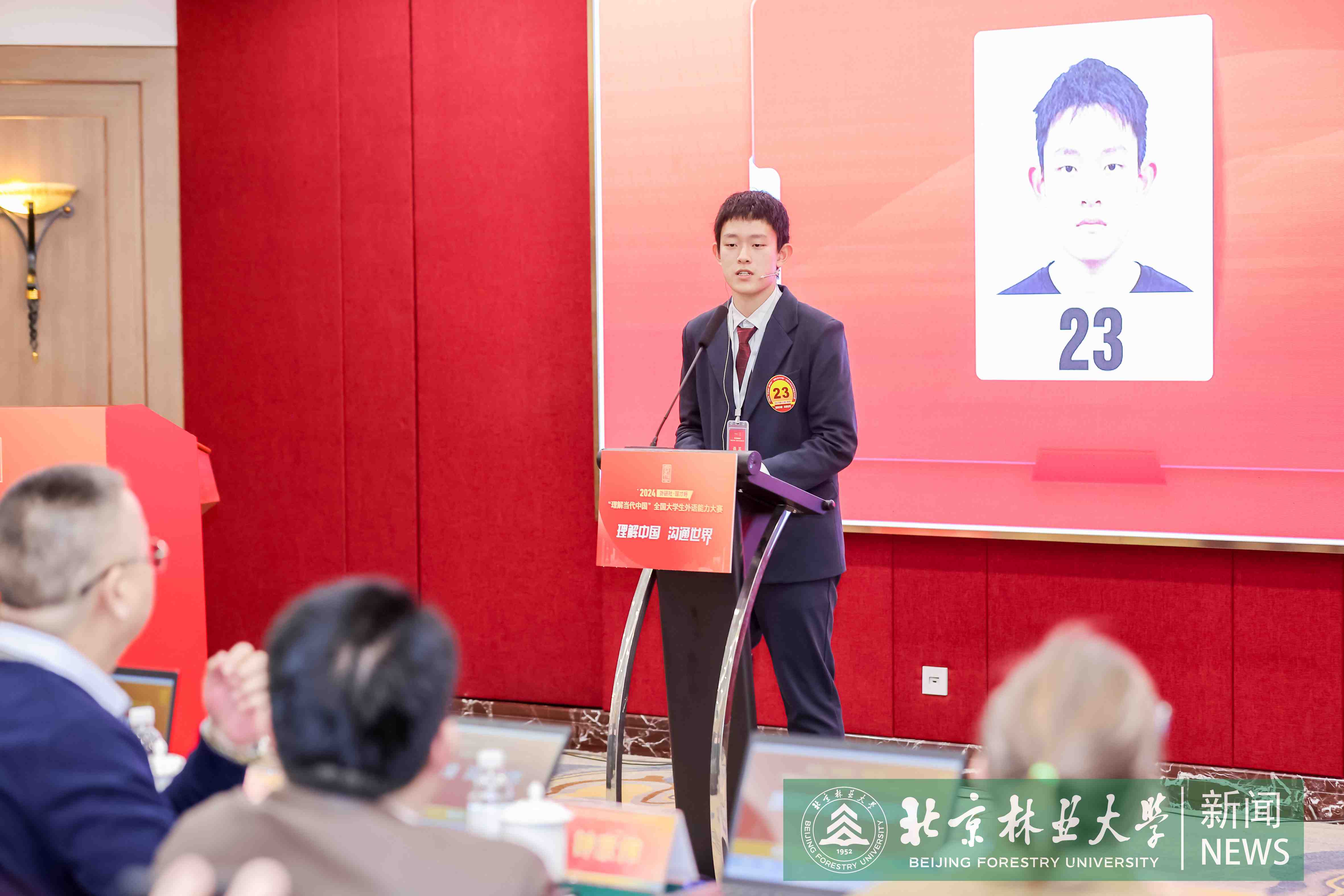 在即興演講中,劉匡迪抽到了與“中國承擔處理氣候變化責任”相關的話題。他以自己家鄉生態文明建設的故事為引入,論述了中國承擔起面對氣候變化的大國責任,得益于習近平生態文明思想的理論優勢、綠色科技的技術優勢以及構建人類命運共同體的目標優勢。最終,他依靠其扎實的語言技能和出色的跨文化交流能力,贏得了評委的肯定,榮獲全國金獎,為我校贏得了榮譽。