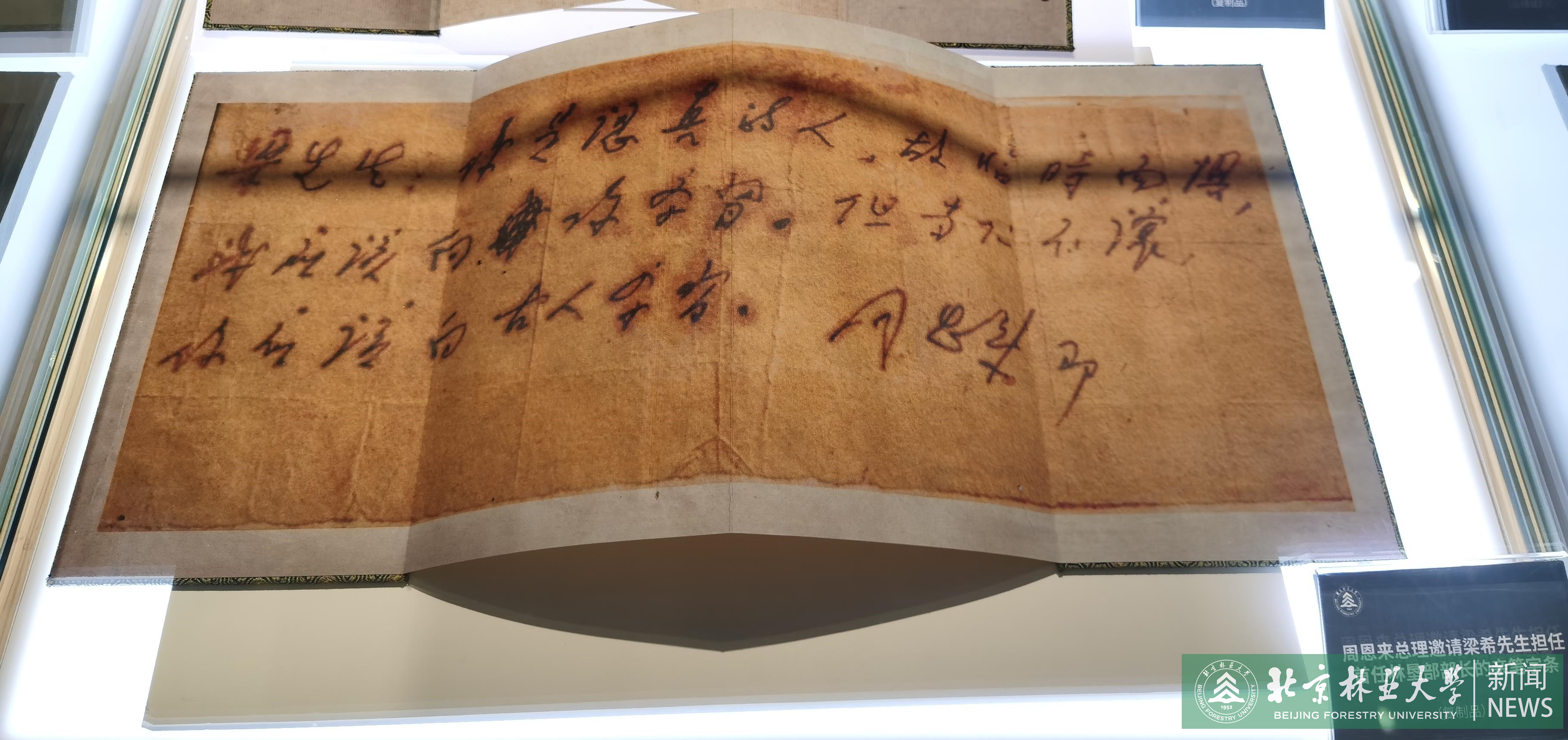 這張周恩來總理邀請梁希先生擔任首任林墾部部長的親筆字條在校史館第一展廳展出。