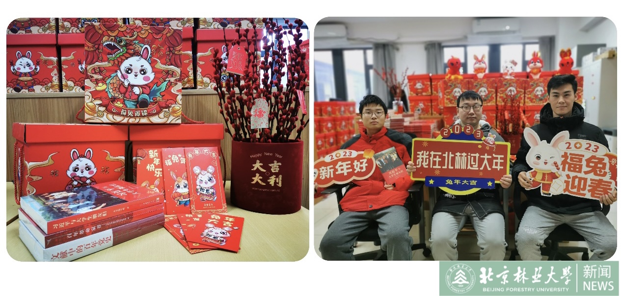 團拜會暖意融融,年味十足。師生共同寫福字、剪窗花、包餃子,學生代表匯報了留校過年的學習生活情況及新年期許。會上,學生代表為領導、老師、廚師代表送上自己寫的福字、剪的窗花,感謝老師、員工們的辛勤付出和關心關愛,祝福北林“福滿林園”;校園內,學生代表把用心包好、第一鍋出爐、熱氣騰騰的餃子和寫好的福字送到了學校各個校門值崗的保安員和各公寓樓宿管員的手中,同時送上心意滿滿的感謝和祝福。