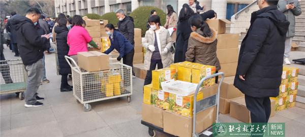 2月27日早上6時許,滿載著5228袋生態(tài)大米和2614箱優(yōu)質(zhì)玉米的專車,伴著朝陽駛?cè)胄@,這是我校2022年消費扶貧暨助力科右前旗紅旗村鄉(xiāng)村振興定點采購的生態(tài)產(chǎn)品。校院兩級工會干部按照計劃組織了發(fā)放活動,現(xiàn)場井然有序。