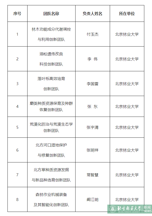 我校入選林草科技創新團隊名單,按姓氏筆畫排序: