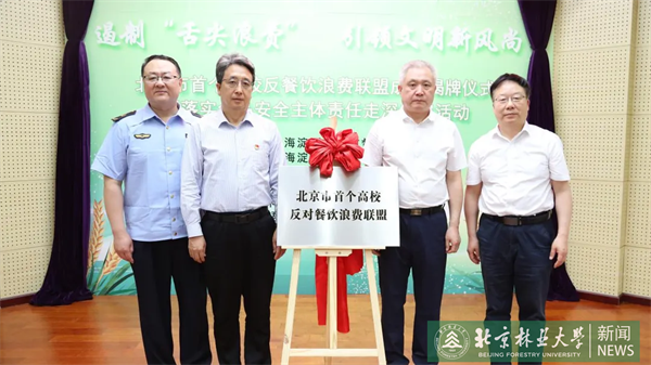 5月16日,北京市首個高校反餐飲浪費聯盟成立揭牌儀式暨落實食品安全主體責任走深走實活動在我校舉辦,校黨委副書記謝學文,北京市市場監督管理局二級巡視員、北京市私營個體經濟協會會長于爽,海淀區市場監督管理局、學院路8所高校后勤部門有關負責人出席活動。