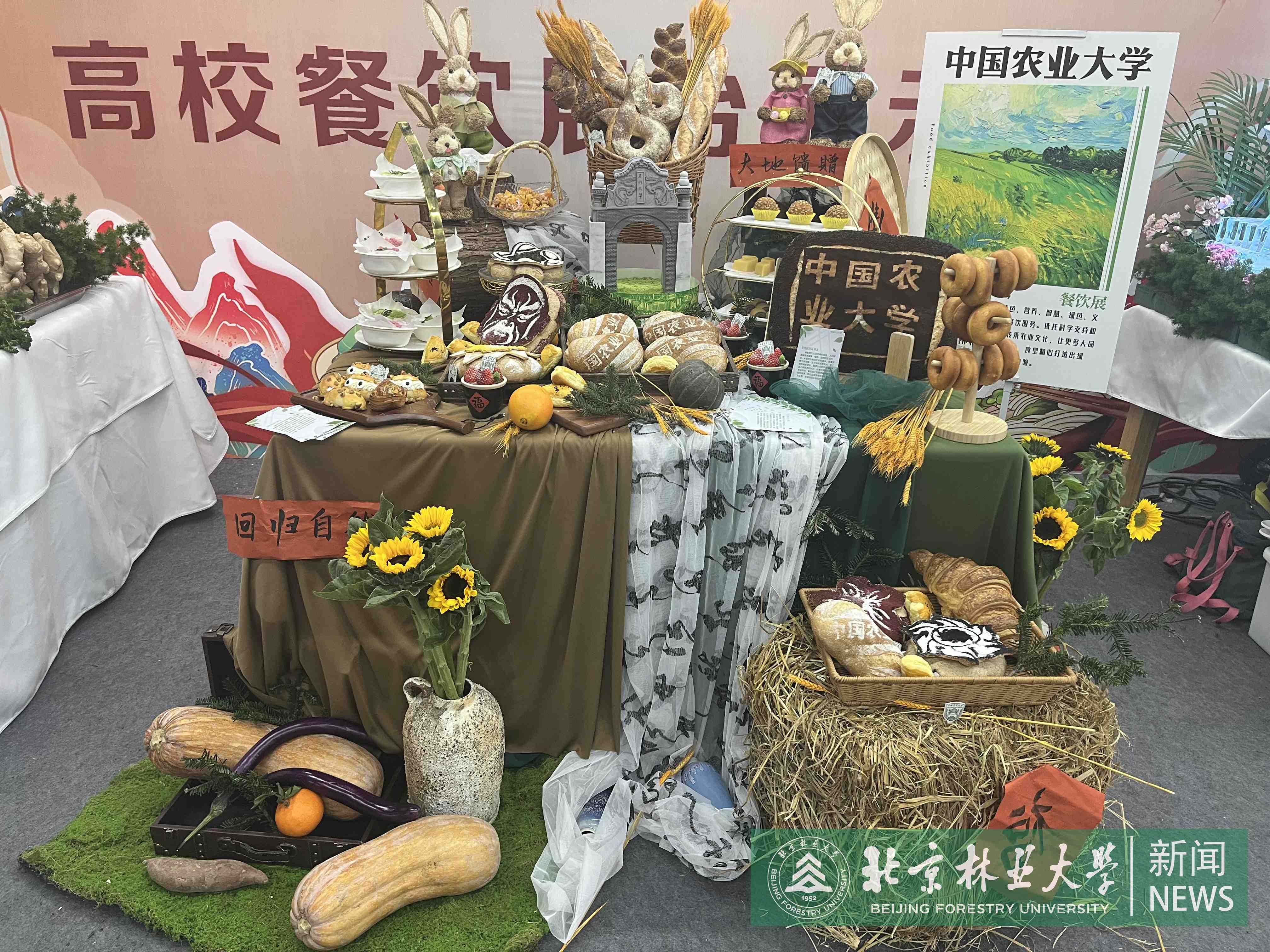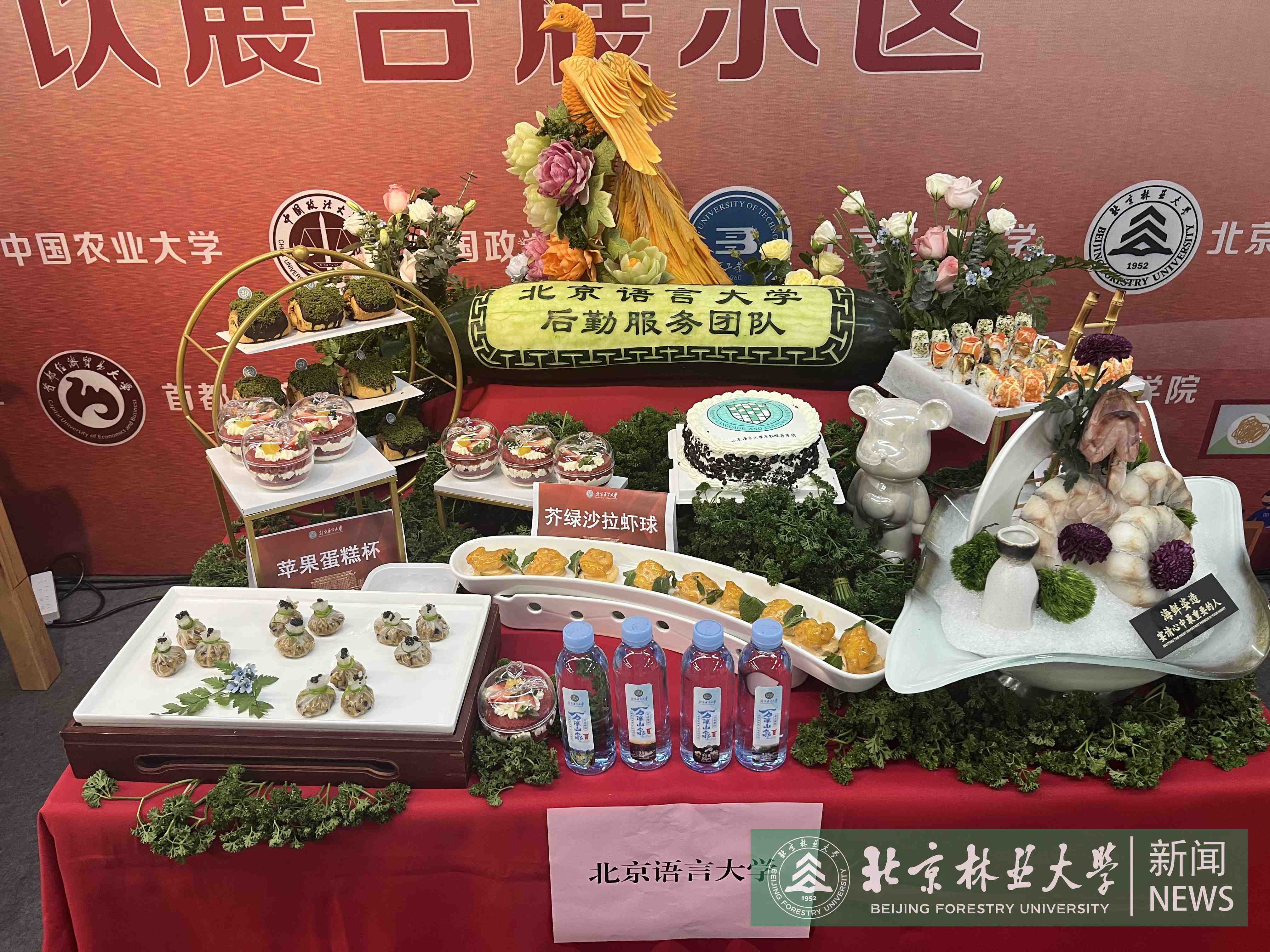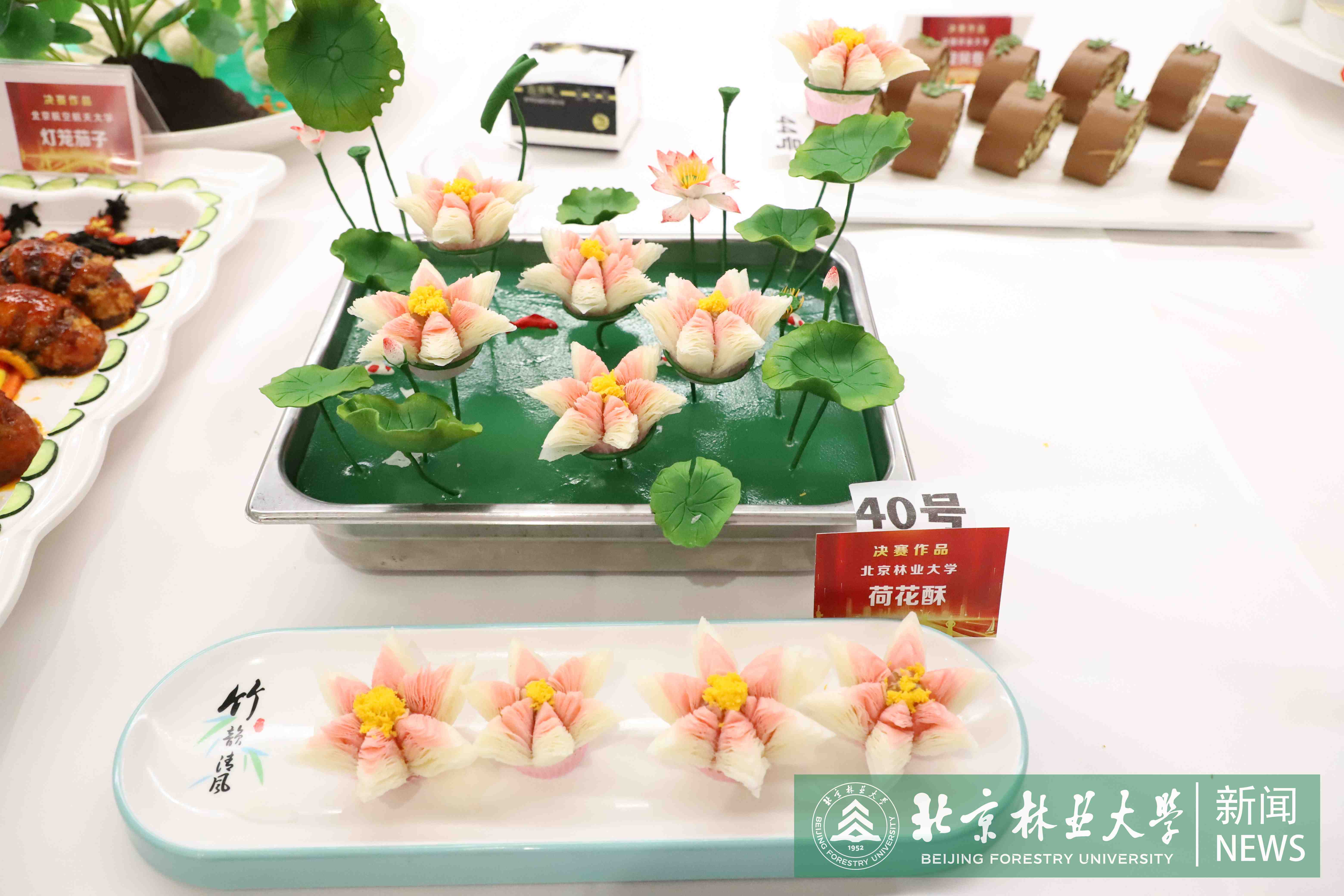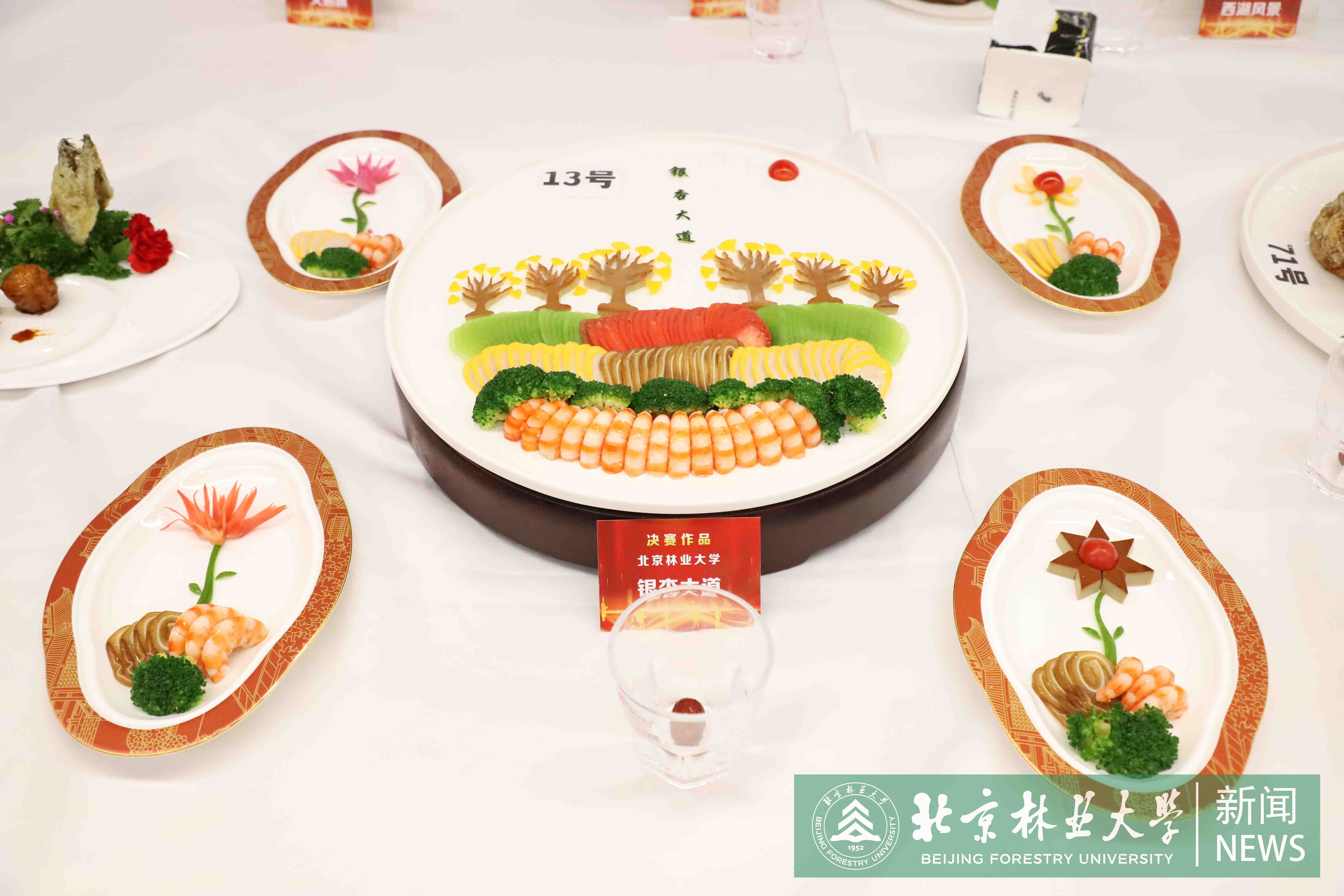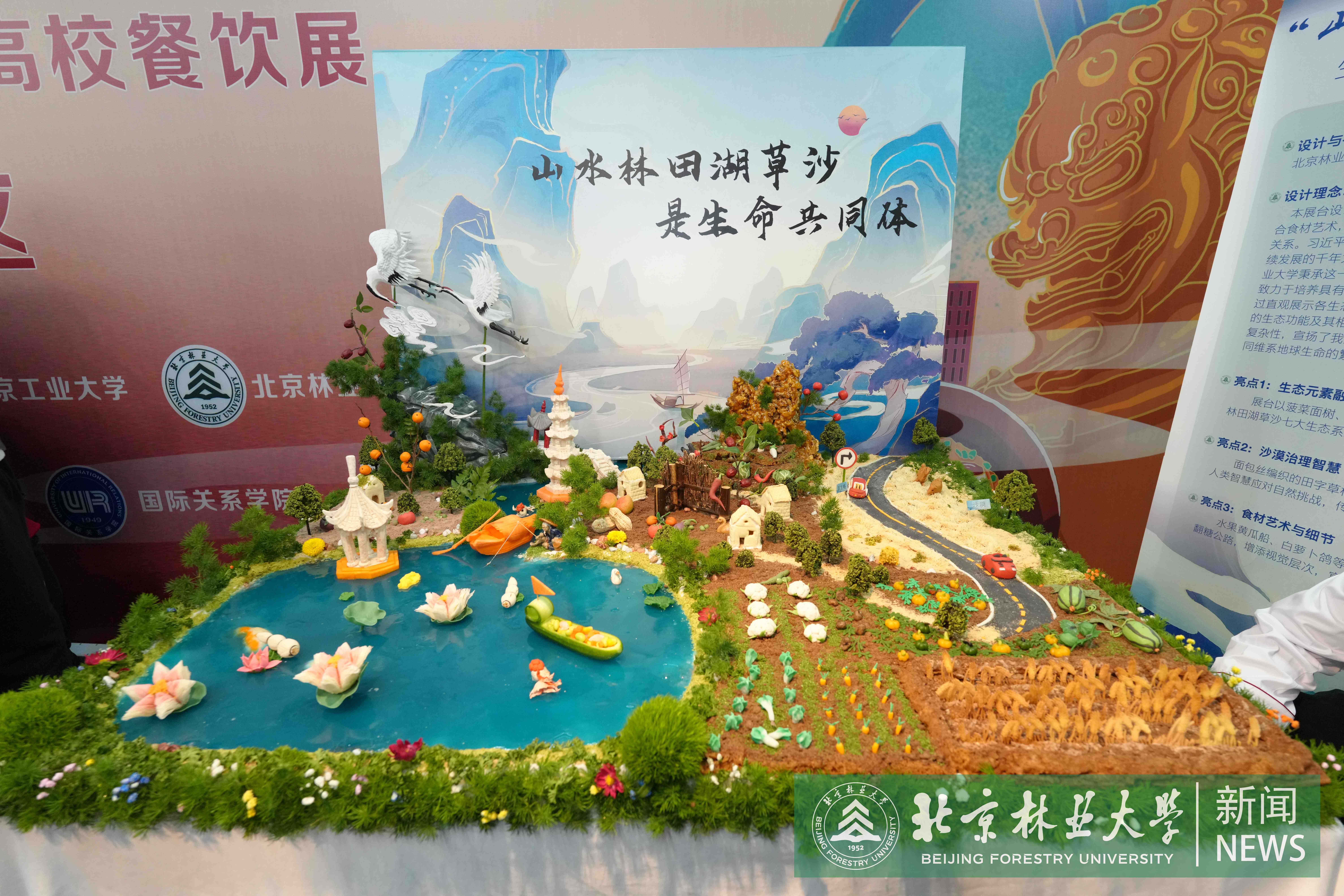 我校在本次烹飪技能大賽中派出3名參賽選手,杜忠?guī)煾档募t案作品《菊花里脊》、趙連紅師傅的白案作品《荷花酥》以及張建鋒師傅的冷拼作品《銀杏大道》均榮獲金勺獎(jiǎng),我校榮獲團(tuán)體一等獎(jiǎng),充分展現(xiàn)了我校餐飲團(tuán)隊(duì)的高超技藝和創(chuàng)意水平。在本次展會(huì)上,我校精心設(shè)計(jì)并布置了以“山水林田湖草沙”生命共同體為主題的展臺(tái)作品,聚焦生態(tài)體系,突出生態(tài)元素與食材細(xì)節(jié)的巧妙融合,展現(xiàn)了食材取之于自然,人回饋?zhàn)匀坏拿缹W(xué)關(guān)系。