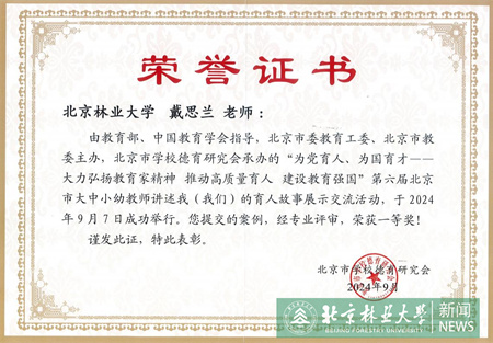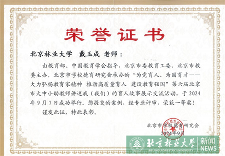 9月7日,在第40個教師節前夕,第六屆“北京市大中小幼教師講述我(我們)的育人故事”集中展示交流活動舉行。經專家評審和前期展示,我校園林學院教授戴思蘭、生態與自然保護學院教授戴玉成獲一等獎,取得我校自參評以來的最好成績。