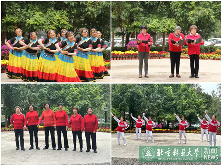林大社區“林苑舞蹈隊”、“巾幗志愿團隊”、健身隊的成員分別為老人們獻上舞蹈《歡迎你》、詩朗誦《我喜歡出發》、歌曲《革命人永遠是年輕》和《我們走在大路上》以及健身操《神鶴起飛》。