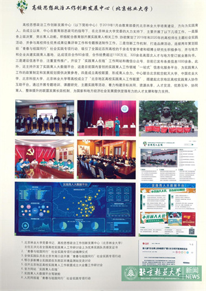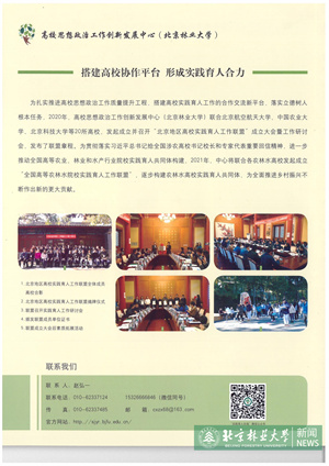 2019年1月,我校承建高校思想政治工作創新發展中心,承建方向為實踐育人。校黨委高度重視中心建設工作,校黨委書記王洪元擔任中心主任,親自部署推動中心建設工作,指導制定中心建設方案,系統總結“時代新人鑄魂工程”落地落實的實踐探索和經驗成效,撰文《小我融入大我 鑄魂時代新人》在《中國高等教育》署名發表。組織開展實踐育人領域前沿理論研究和實踐創新,聚焦高校大學生思想入黨問題,從理論和實踐兩個層面探索破解大學生思想入黨密碼的方法路徑。主持《推動習近平新時代中國特色社會主義思想入腦入心長效工作機制的研究》全國黨建研究會重點課題,推動出臺《關于全面推動習近平新時代中國特色社會主義思想進教材進課堂進頭腦的實施意見》,實施九個行動計劃探索完善“三進”工作機制。主持《基于全程育人理念的課程思政體系建設研究與探索》北京高校思想政治工作重難點攻關計劃項目。謀劃部署“小我融入大我,青春獻給祖國”主題社會實踐,被列為2023年教育部“時代新人鑄魂工程”十大行動之一。