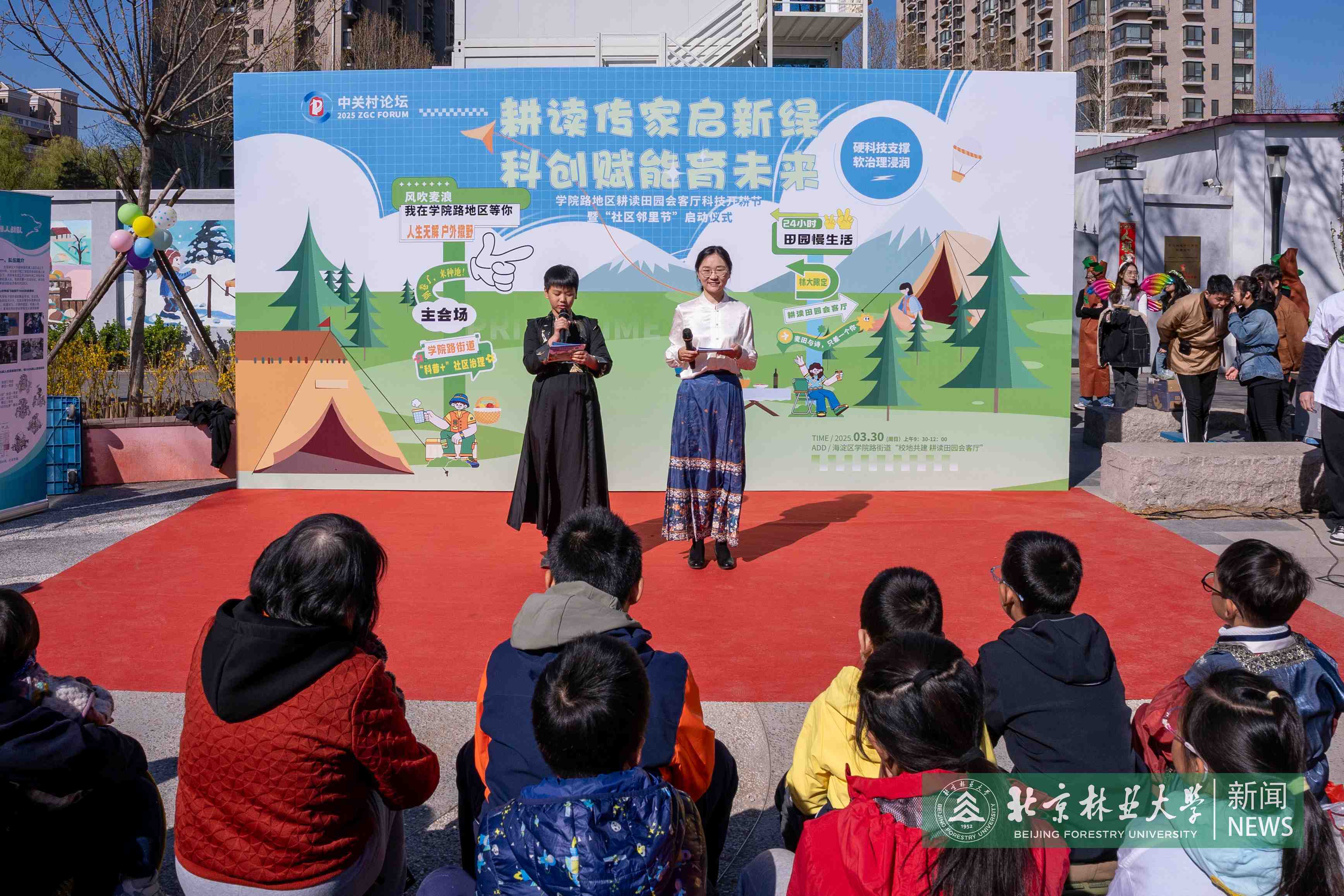 3月30日,學院路地區“耕讀傳家啟新綠,科創賦能育未來”——耕讀田園會客廳科技開耕節暨“社區鄰里節”啟動儀式在北京林業大學校地共建耕讀田園舉辦。本次活動由林業大學社區居委會承辦。副校長張志強,學院路街道黨工委書記康云及全體班子成員受邀出席活動。黨委宣傳部、黨委研究生工作部、教務處、博物館、綜合保障部、神奇種子農場等單位相關負責人,團委民樂團、工學院、材料學院、信息學院、環境學院、馬克思主義學院、草學院師生以及林大社區青芽耕讀家庭等200余人參加活動。