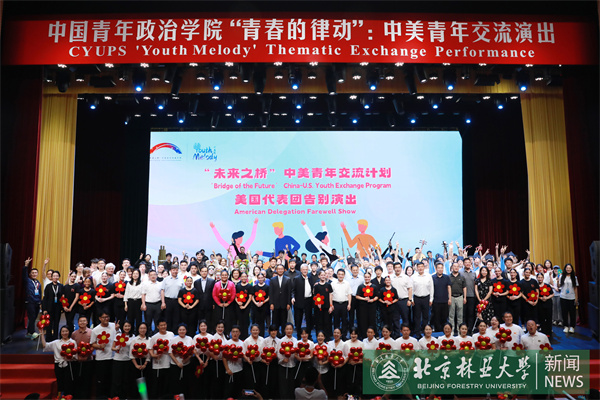 在美國代表團告別演出暨中國青年政治學院“青春的律動”中美青年交流演出上,我校學生民樂團演奏了極具豪情壯志的中國樂曲《好漢歌》和西方拉丁爵士風格的《龍舌蘭》等兩首經典作品,既體現中美各自文化特色,又以我國民族樂器展現文化融合的魅力,將演出氛圍推向高潮。演出尾聲,中美青年代表共同唱響《鳳凰花開的路口》,用歌聲傳遞對共創美好未來的期許。