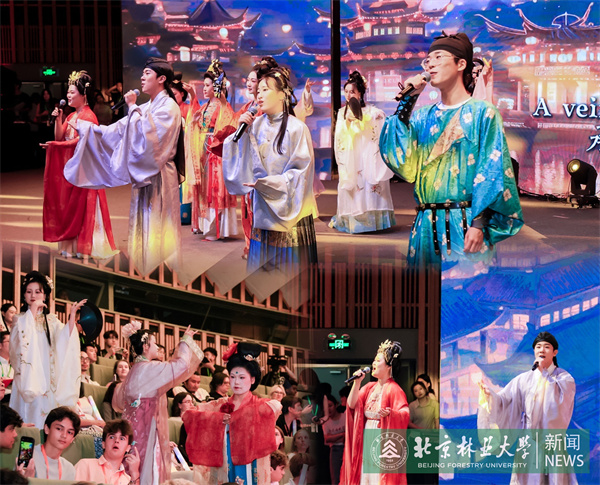 在“Bridge”中美青年友好會見主題音樂會上,我校學生合唱團身著靚麗華服,青春演繹歌曲《萬疆》,以悠揚國風旋律配合華服走秀驚艷全場,展現中華傳統文化之美,美國青年紛紛與演員合影留念,在驚嘆中感受中華文化的深厚底蘊。