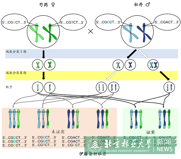 圖4. 牡丹與芍藥雜交形成伊藤雜種牡丹的遺傳模型