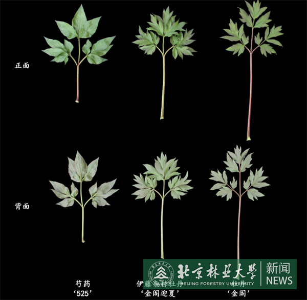 圖1. 芍藥、牡丹以及伊藤雜種牡丹的葉片