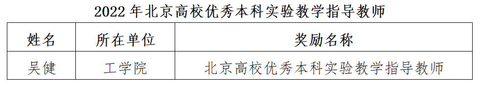 截至目前,我校共有北京市教學名師31名,青年教學名師6名,北京高校優秀本科育人團隊3支,北京高校優秀教學管理人員4人,北京高校優秀本科實驗教學指導教師1人,北京高校優質本科課程17門,北京高校優質本科教材課件16部。