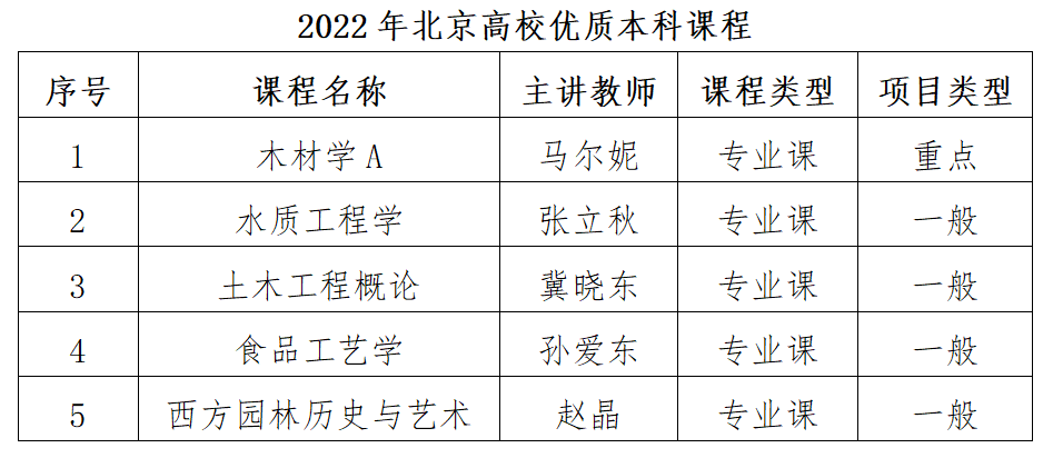 近日,北京市教育委員會公布了2022年“北京市高等學校教學名師獎”、“北京高校優秀本科育人團隊”、“北京高校優秀教學管理人員”、“北京高校優秀本科實驗教學指導教師”、北京高校“優質本科課程”和“優質本科教材課件”評選結果,我校林學院劉勇教授、工學院康峰教授分別榮獲第十八屆北京市高等學校教學名師獎和第六屆北京市高等學校青年教學名師獎,以園林學院鄭曦教授為帶頭人的“風景園林專業本科育人團隊”獲評北京高校優秀本科育人團隊,教務處副處長王毅力獲評北京高校優秀教學管理人員,工學院高級實驗師吳健獲評北京高校優秀本科實驗教學指導教師,《木材學A》等5門課程被認定為北京高校“優質本科課程”、《數據庫原理及應用教程(第四版)》等4部教材課件被認定為北京高?!皟炠|本科教材課件”。其中,北京高校優秀本科實驗指導教師獎勵于2022年首次設立。