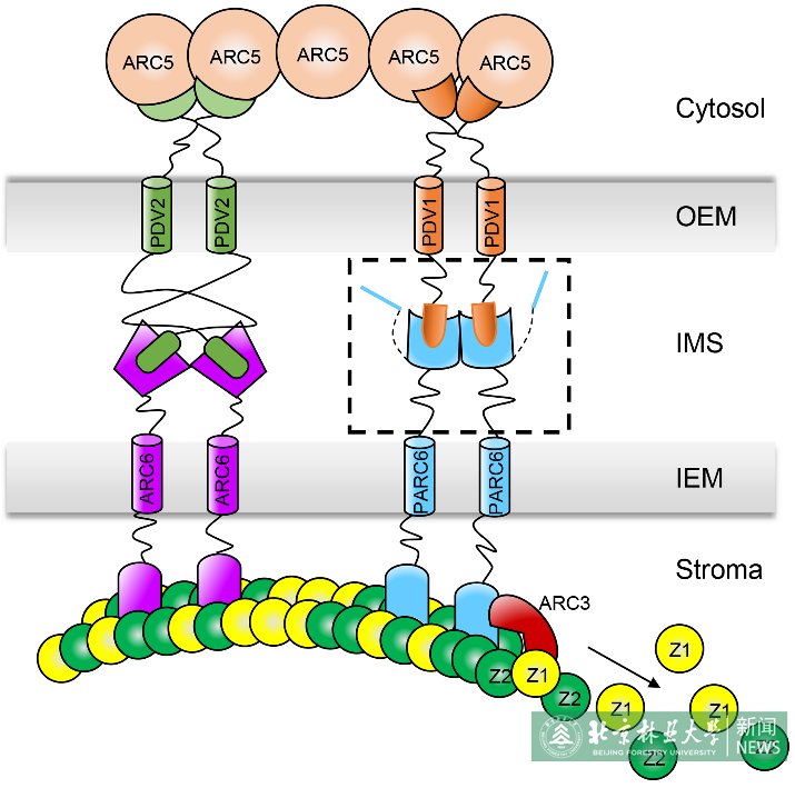 綜上所述,該研究不僅使我們對Min系統的認知從葉綠體內膜擴展到了外膜,還揭示了PARC6–PDV1互作對葉綠體分裂的多重調控機制。