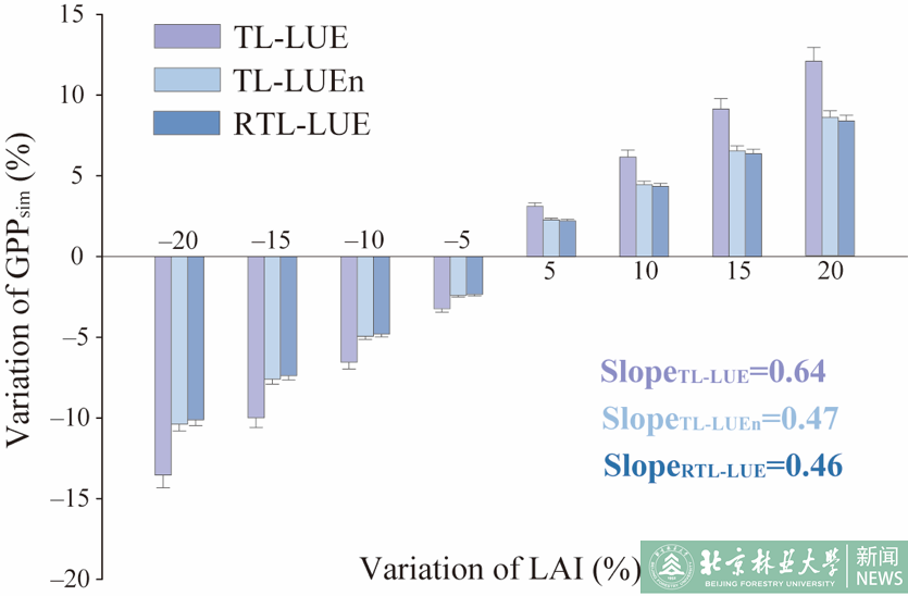 “雙葉”模型模擬的GPP對葉面積指數(LAI)的敏感性