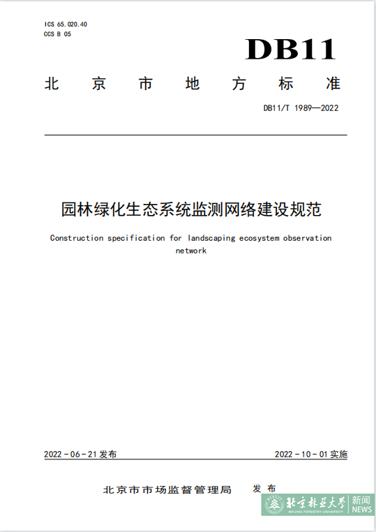 “森林體驗指數”是北京園林綠化生態監測網絡 (Beijing Ecological Observatory Network,BEON)的首個生態數據產品。通過全市12個 BEON 監測站點所提供實時、高頻、連續的生態系統要素監測數據,實現了“森林體驗指數”數據產品的實時計算與可視化。這一過程中,查天山教授團隊先后攻克了指數研發、算法優化、指數實時計算、結果自動可視化、標準制定、指數發布等多個技術難關,并以北京林業大學為第一起草單位編制了《園林綠化生態系統監測網絡建設規范》(DB11/T 1989-2022)和《森林體驗指數評價技術規范》(DB11/T 2029-2022)地方標準,已由北京市市場監督管理局正式發布。