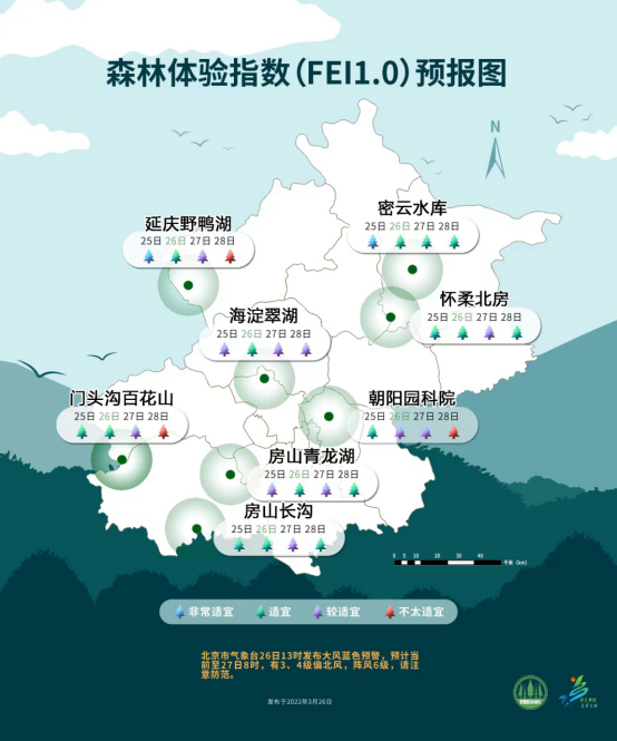 森林體驗指數是社會公眾對林地、濕地、草地等小氣候環境感知程度的無量綱指數,包含了社會公眾最關心的8個生態指標——林內空氣溫度、濕度、風速、負氧離子濃度、PM2.5濃度、PM10濃度、潛熱和顯熱,以及物候照片和特色動植物影像。相關信息在北京園林綠化局和北京氣象部門官方網站等地發布,市民可查詢當天及未來三天的森林體驗指數預報。該指數在0-1之間變化,越接近1,表示公眾體驗越好。這些指標不僅體現了人對小氣候環境的體感“舒適度”“健康度”,以及生態系統對氣候和水文的“調節度”,還體現了生物多樣性和特色景觀等的“加分項”,能夠讓市民更加直觀便捷地選擇適合自己意向的森林體驗場所,為公眾出行提供參考。