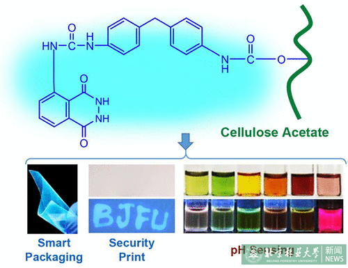 近日,材料科學與技術學院、林木生物質化學北京市重點實驗室許鳳教授團隊基于醋酸纖維素開發了一種多功能熒光材料,相關研究成果以“Cellulose-Based Fluorescent Material for Extreme pH Sensing and Smart Printing Applications”為題發表于ACS Nano期刊(一區,IF=18.027)。