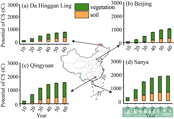 然而,隨著造林適宜區域逐漸減少,未來如何進行造林或再造林規劃,成了管理人員和科研人員的重大困擾。近年來,科學家試圖從溫度和降水對森林生存的影響方面確定適合造林區域,但目前關于其森林碳匯,特別是土壤碳匯信息非常罕見。在哪里造林或再造林最有效地提高生態系統碳匯,還是一個巨大的科學挑戰。因此,迫切需要考慮植被、土壤和生態系統的造林或再造林固碳速率空間圖,為決策者在國土空間統籌下進行科學指導,最大限度地提高造林或再造林的固碳能力,更好服務于國家碳中和戰略目標(圖1)。