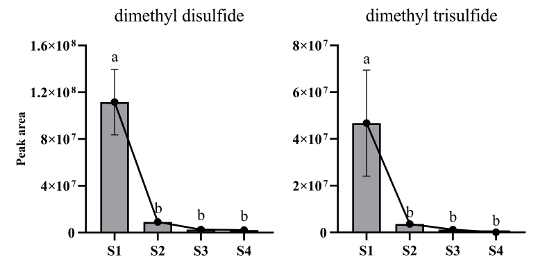 巨魔芋開花4個時期的2種含硫化合物的成分變化