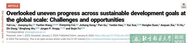 近日,草學院青年教師劉雅莉以第一作者在The Innovation(IF="32.1)發表研究論文“Overlooked" uneven progress across sustainable development goals at the global scale: Challenges and opportunities”,闡釋了長期被忽視的可持續發展目標間均衡度帶來的挑戰和機遇。