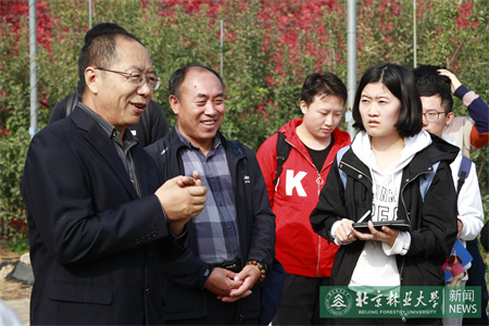 在河北三河市金天地生態園,三河市林草局原副局長路明選向同學們介紹了當地生態園的基本情況,圍繞蘋果樹疏果、病蟲害防治以及質量安全管理等內容,進行全面詳細講解,并現場解答了同學們提出的問題。