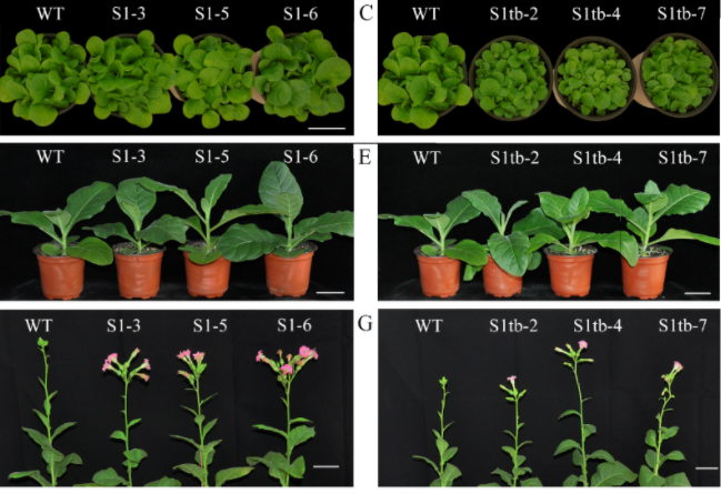 圖1. 梅花 P mSBP1 和 P mSBP1tb 基因在煙草中過表達表型 圖2. 梅花 P mSBP6 基因在煙草中過表達表型 圖3. 梅花PmSBP1與 P mSOC1s 啟動子互作 通過對轉基因煙草中開花相關基因定量分析發現, 本研究系統研究了梅花 PmSBP1 / 6 基因生物學功能, 而 P mSBP1tb 的過表達調控開花不受光周期的影響