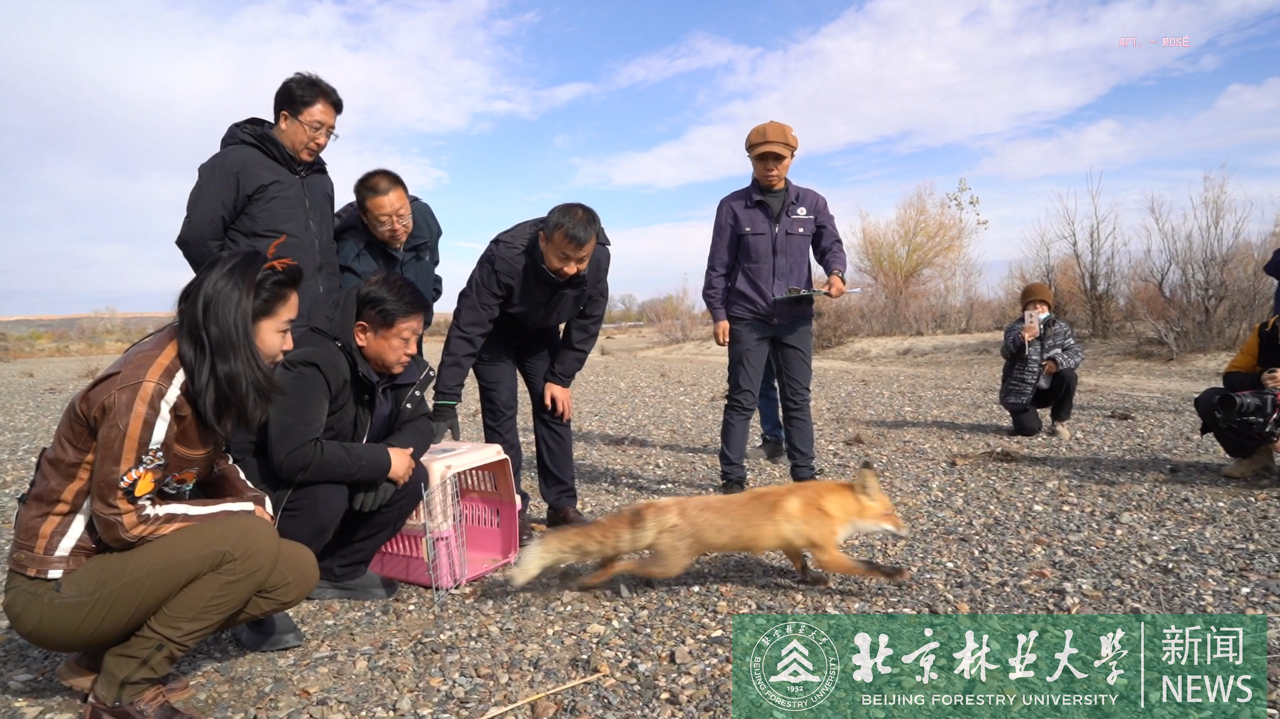 最后,校地雙方共同放歸了一只由阿勒泰地區自然保護協會救治康復的國家二級重點保護野生動物赤狐。