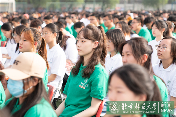 安黎哲在講話中回顧了我校辦學70余年來歷經古剎創業,肖莊辦學,輾轉云南,返京復校,更名壯大,保持領先的光輝歷史。70余年來,我校秉承“知山知水,樹木樹人”辦學理念,堅守“替河山裝成錦繡,把國土繪成丹青”偉大情懷,把生態文明建設作為立校之本、發展之基,積極投身植樹造林、綠化祖國、美麗中國等生態文明建設的實踐中,始終與國家共進共榮、與時代同向同行。他指出,新征程上,生態文明建設的接力棒即將交到新時代北林青年手中,并對他們提出三點希望。一是希望同學們堅守服務生態文明建設的遠大志向,做習近平生態文明思想的堅定信仰者,修德修身,明辨是非;二是希望同學們厚積生態文明建設學科專業知識,做人與自然和諧共生現代化的研習者,勤學善思,精進圖強;三是希望同學們積極投身生態文明建設的偉大實踐,做生態文明建設的不懈奮斗者,繼往開來,再建新功。他勉勵2023級新生,躺平不能躺贏,奮斗才是良方,要扎根北林這片沃土,樹立生態文明建設之志,堪當生態文明建設重任,在服務生態文明建設的賽道上奮力奔跑,努力跑出當代青年的最好成績。