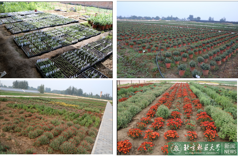 搞好菊花可不能孤芳自賞。團隊“牽手”花卉企業,助力美麗鄉村建設,與北京市綠地養護管理事務中心、延慶農場、武漢植物園和河南大學等多家單位開展品種推廣合作,菊花新品種年種植面積達100余畝;商品苗年銷售量20000余株?!扒谢ň债a業化周年生產技術”“盆栽菊花產業化周年生產技術”“露地早花小菊品種培育系列技術”“中國傳統盆栽菊花周年生產技術”等也實現了產業化。2019年,經國家林業和草原局批準,我校牽頭成立了菊花產業國家創新聯盟,為菊花行業開展產學研合作搭建平臺。聯盟將茶用菊、藥用菊和食用菊等進行推廣種植,幫助農戶實現增收脫貧;用易培育易成活的小菊布置而成的“大地花?!?,為全國各地的旅游產業增添了不少亮色。