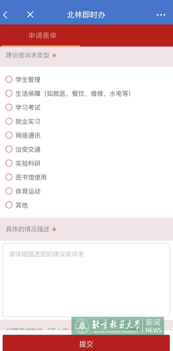 今年9月,我校黨委以解決學(xué)生訴求為抓手,把解決實(shí)際問(wèn)題的“辦事”與解決思想問(wèn)題的“育人”緊密結(jié)合起來(lái),健全完善接訴即辦工作機(jī)制,成立學(xué)生接訴即辦工作專班,理順訴求辦理工作路徑,出臺(tái)《學(xué)生接訴即辦工作規(guī)定(試行)》,在數(shù)字北林“一表通服務(wù)”中開(kāi)發(fā)上線“北林即時(shí)辦”學(xué)生訴求辦理網(wǎng)絡(luò)服務(wù)平臺(tái)。截至目前,平臺(tái)已累計(jì)辦理學(xué)生管理、生活保障、網(wǎng)絡(luò)通訊、實(shí)驗(yàn)科研、就業(yè)實(shí)習(xí)等各類訴求3397條,這其中既有對(duì)有關(guān)學(xué)校工作的咨詢建議,也有日常學(xué)習(xí)生活的問(wèn)題反饋。
