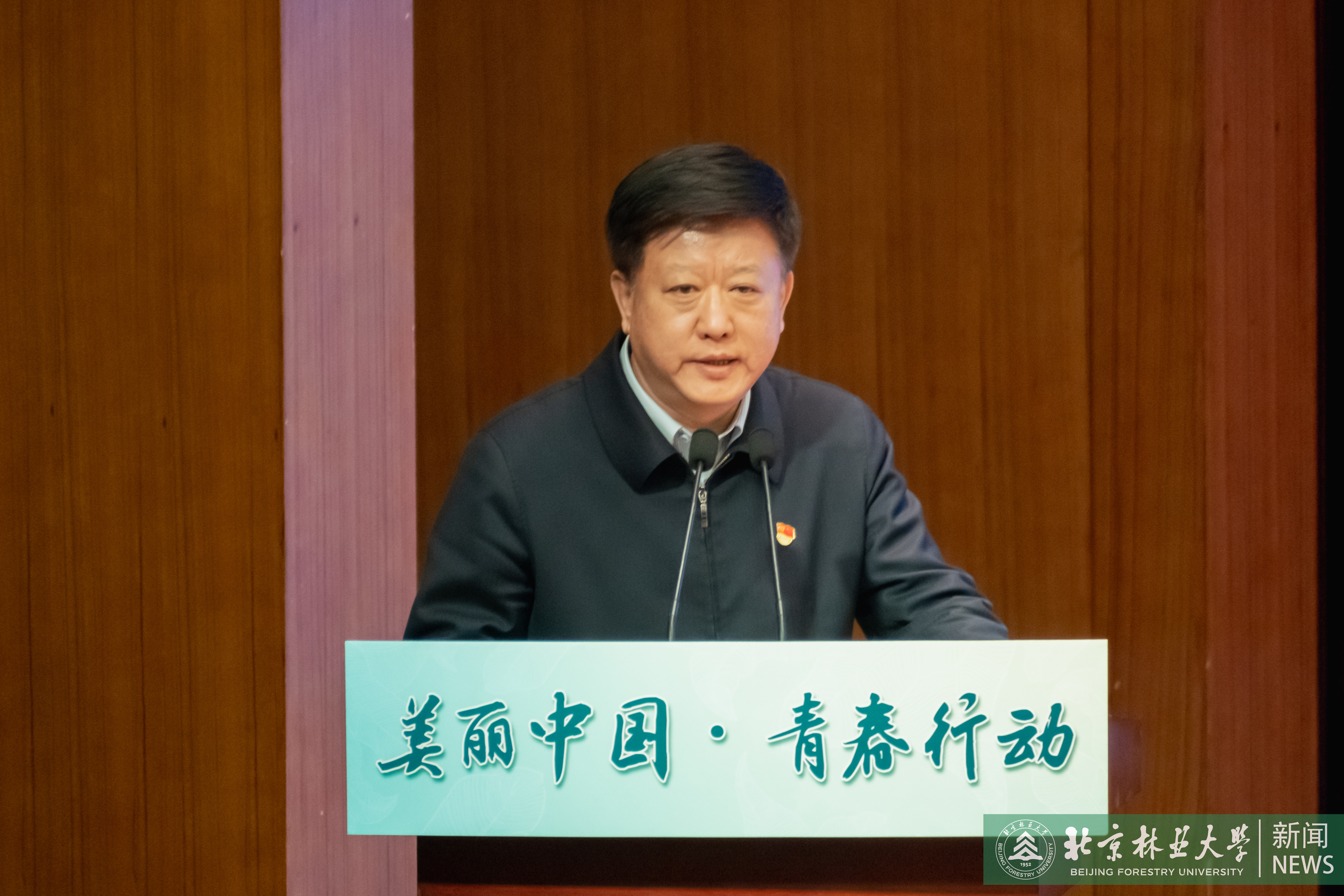 校黨委書記王洪元致辭,他向長期以來關心和支持我校發展建設的有關部門領導和社會各界表示衷心感謝。他指出,我校作為“美麗中國”建設的高校排頭兵,堅持用習近平生態文明思想指導辦學實踐:一是建強全國青少年生態文明教育中心,構建以學校教育為基礎、覆蓋全社會的生態文明宣傳教育體系;二是依托高校和科研院所學科智力優勢,持續開展青少年生態文明教育實踐項目,形成高質量、有影響的學術成果和實踐活動品牌;三是培養更多胸懷“植綠報國”理想的新時代青年,激勵青年學子做習近平生態文明思想的忠實實踐者。