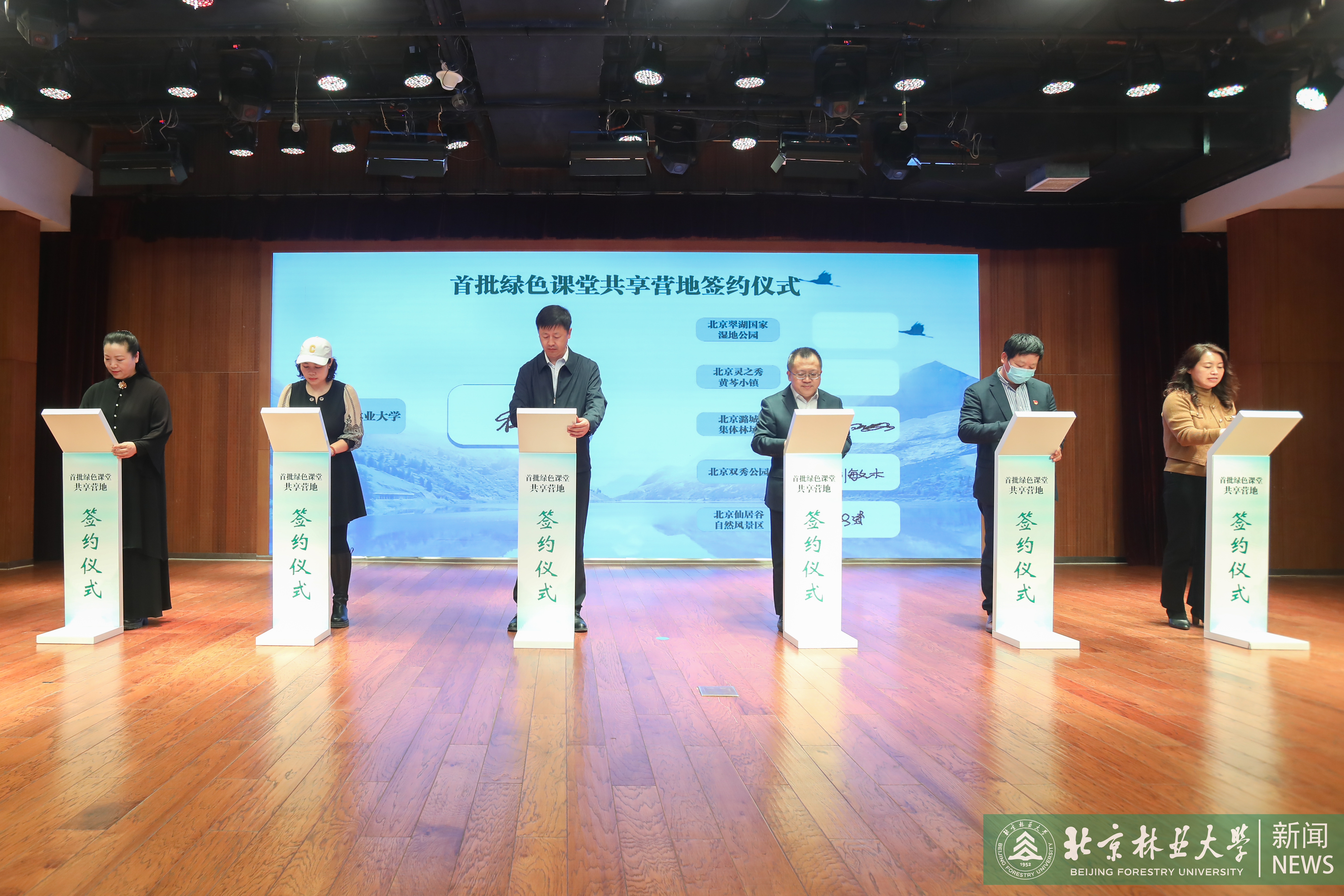 推進會上啟動了首屆全國青少年綠色科技創新大賽。會上,我校與北京翠湖國家濕地公園、北京仙居谷自然風景區、北京潞城集體林場等首批綠色課堂共享營地合作代表單位簽約。今后將以公園、城市綠地、自然林場內的動植物等要素為研究對象,發揮高校青年投身綠色教育服務的主觀能動性,開展首都青少年自然教育科普活動。