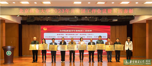 孫信麗在會上宣讀了《共青團北京林業大學委員會關于表彰2022—2023年先進集體及個人的決定》,并為二級學院青年教師團工委授牌。為組織動員青年教師參與學生全面發展,促進成長成才,2022年在5個試點學院成立了青年教師團工委,取得一定成效。今年已完成其余11個學院青年教師團工委成立工作,進一步提升青年教師思想政治素質和育人能力。