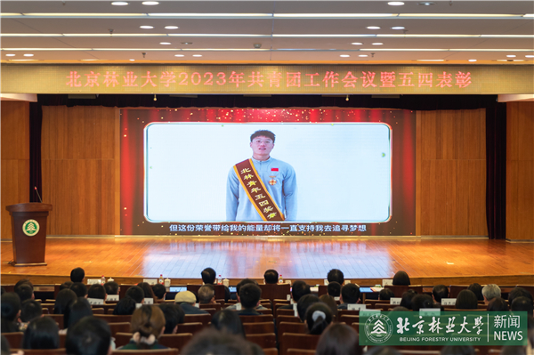 4月27日下午,“學習二十大 永遠跟黨走 奮進新征程”北京林業大學2023年共青團工作會議暨五四表彰大會在學研報告廳舉行。團中央組織部副部長田小飛、校黨委書記王洪元、校黨委副書記孫信麗出席會議,相關職能部門負責人、各學院黨委書記、團干部和團員青年代表等近300人參加會議。