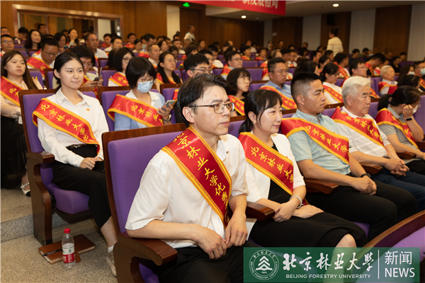 王洪元代表校黨委向我校奮戰(zhàn)在各個崗位的全體共產黨員致以誠摯問候,向受到表彰的先進集體和優(yōu)秀黨員表示熱烈祝賀,向“光榮在黨50年”老同志老黨員致以崇高敬意。他指出,過去一年,全校各級黨組織和廣大黨員高舉習近平新時代中國特色社會主義思想偉大旗幟,深入學習貫徹黨的二十大精神,讓黨旗在構建“一校兩區(qū)”新發(fā)展格局生動實踐中高高飄揚。全校各級黨組織高站位謀劃、高標準組織、高質量推進主題教育,引領師生黨員在凝心鑄魂中主動擔當強國有我時代使命;不折不扣落實習近平總書記勉勵語,構建“部局市”共建新機制,加強習近平生態(tài)文明思想研究闡釋,推進全國重點實驗室建設,成立全國首家國家公園學院,全力支持蒙古國“種植十億棵樹”計劃,更好服務“黨之大事”“國之大者”;持續(xù)推進黨的質量建設工程,不斷健全高質量黨建引領事業(yè)高質量發(fā)展的工作體系,加大優(yōu)秀年輕干部和人才培養(yǎng)力度,持續(xù)營造“嚴的氛圍”、深耕“改的文化”;高標準履行守護師生生命健康安全政治責任,統(tǒng)籌抓好疫情防控和安全穩(wěn)定各項工作;始終牢記全心全意為人民服務宗旨意識,統(tǒng)籌抓好雄安校區(qū)規(guī)劃建設等重大民生工程,建成校史館,啟動建設林科實驗樓,穩(wěn)步推進“央保入軌”工作,成功獲批海淀區(qū)第37個基礎教育集團。