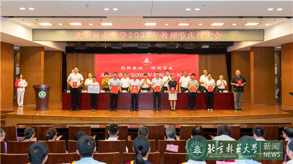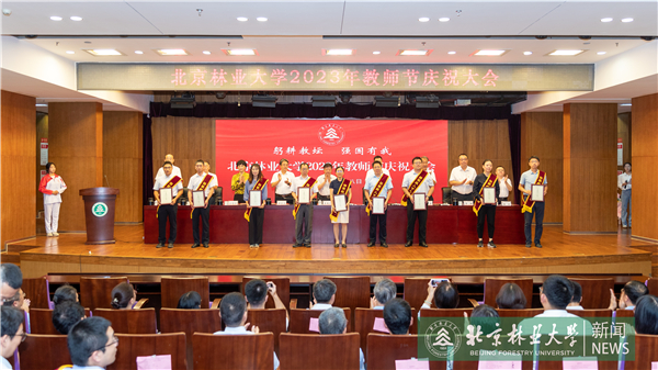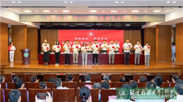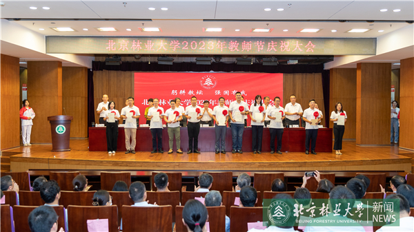 校黨委副書(shū)記謝學(xué)文宣讀《北京林業(yè)大學(xué)2022-2023年度教師獲得獎(jiǎng)勵(lì)及稱(chēng)號(hào)情況通報(bào)》,全體校領(lǐng)導(dǎo)為優(yōu)秀教師代表頒獎(jiǎng)。